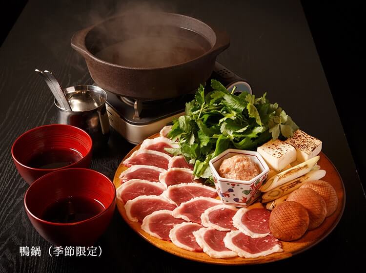 冬の季節限定メニュー「鴨鍋」など、四季を感じる景観とともに、ゆったりと美食の時間をお楽しみください。